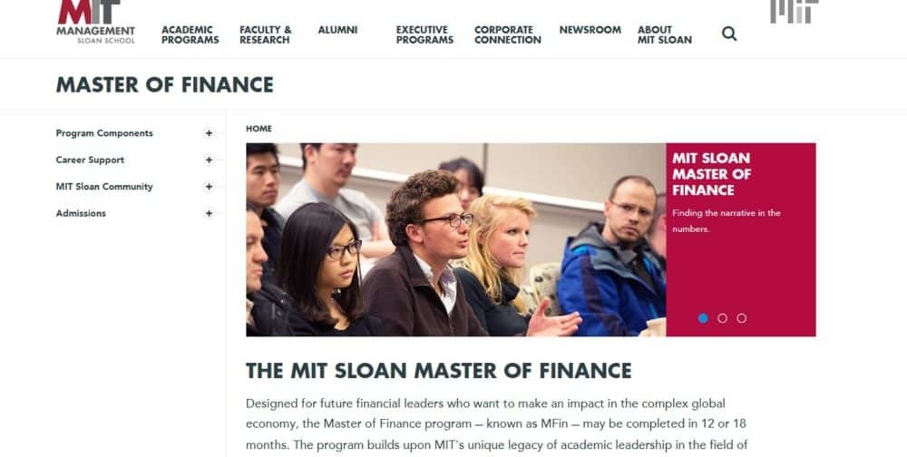 Master of Finance program at MIT Sloan School of Management gives students a strong understanding of the essence of financial theory and practice.