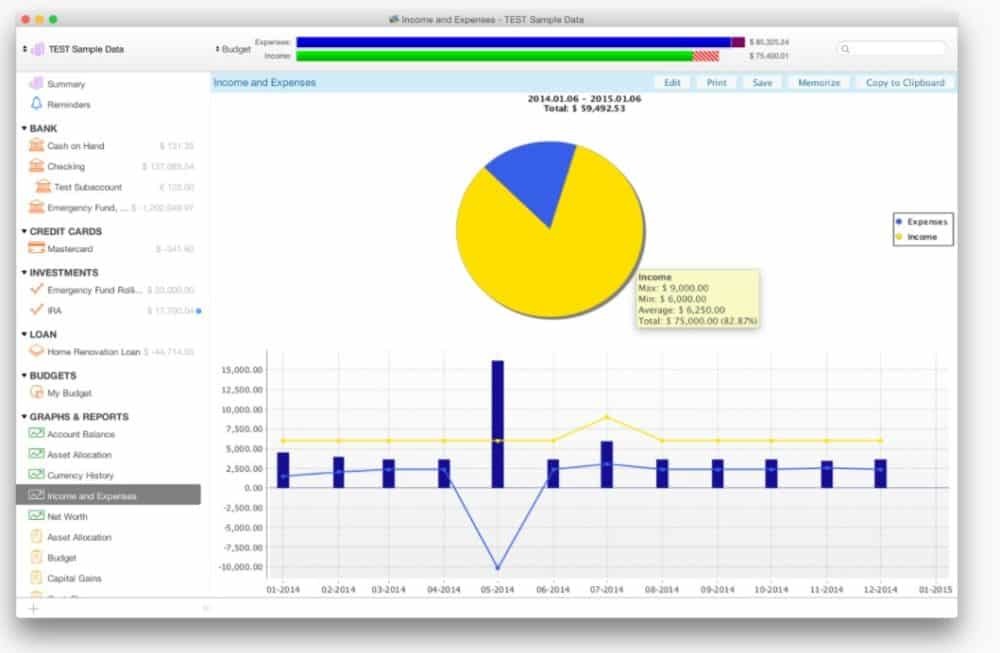 Moneydance is advanced private finance software with features such as online banking and bill payment, account management, and budgeting and investment tracking which allows users to take charge of single and recurring transactions and as well plan for the future.