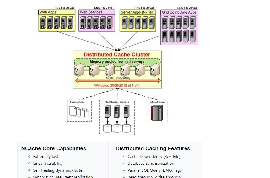 NCache is a 100% Native .NET Open Source distributed cache (released under Apache License, Version 2.0). NCache provides an extremely fast and linearly scalable distributed cache that caches application data and reduces expensive database trips. Use NCache to remove performance bottlenecks related to user data storage and databases and scale user .NET and Java applications to extreme transaction processing (XTP). NCache has been the market leader in .NET Distributed Caching for the last 10 years. It is a very popular and mature product with hundreds of high end customers all over the world relying on it for their application scalability needs.NCache is an extremely fast in-memory distributed cache. It is much faster than going to the database to read data. NCache provides sub-millisecond response times to its clients. NCache has a Cache Dependency feature that lets users manage relational data with one-to-one, one-to-many, and many-to-many relationships among data elements. Cache Dependency allows users to preserve data integrity in the distributed cache. Cache Dependency lets users specify that one cached item depends on another cached item. Then if the second cached item is ever updated or removed by any application, the first item that was depending on it is automatically removed from the cache by NCache. Cache Dependency also lets users specify multi-level dependencies as well. NCache is an in-memory .NET distributed cache and has been developed with C#. Therefore, unlike some other Java based distributed caches that only provide a .NET client API, NCache is a 100% native .NET product that fits very nicely in user .NET application environments.