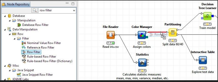 New Decision Tree to Rule Set node converts (a single) Decision Tree model to a PMML-formatted Rule Set model and also to a data table containing the rules in a textual form. The Rule Engine (Dictionary) applies rules from a rule table to a data table. The Missing Value node now exports a PMML model and can feed a Missing Value (Apply) node. It also supports more options such as "previous" or "linear interpolation". Another new node allows columns to be filtered that have more than a specified fraction of missing values.