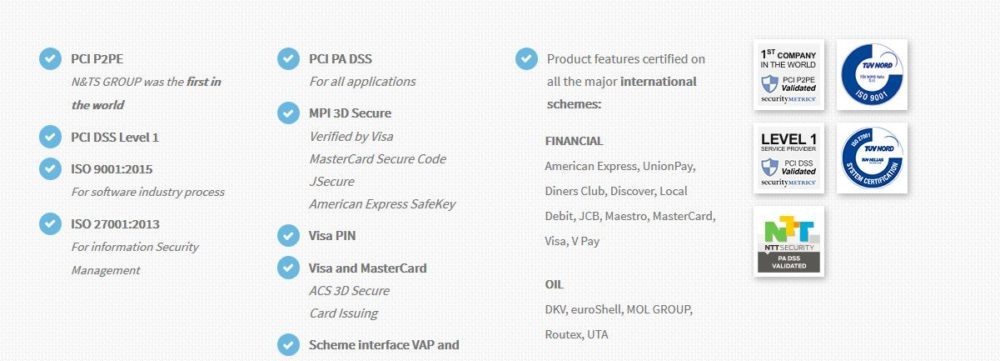 N&TS Group is PCI PA-DSS compliance for all applications; it has direct monitoring and business intelligence reporting tools that are useful for the business. It also offers customizable and industry-specific antifraud parameters to promote security of its users.