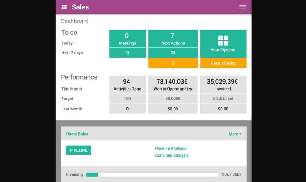 Odoo automate activities based on your sales scripts: calls, meetings, mailing, and quotations. Get all information you need, directly on the opportunity: page viewed, mail receivedGet a quick overview of what's going on in your team. See when a colleague logs a call or send a quote.