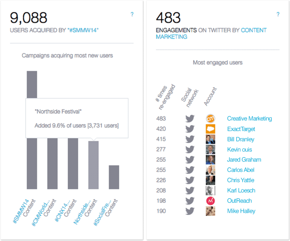 Offerpop Platform gather social IDs, email opt-ins, affinity data and demographics and track results on customer acquisition, sales and engagement . Pull detailed reports on consumer experiences — impressions, clicks, shares, time spent and attribution .