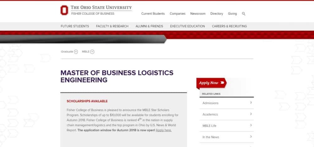 The Ohio University Master of Business Logistic Engineering program allows students to go beyond the classroom by providing solutions to logistics-related problems for major companies though two field study courses. Student teams have recently designed solutions for Honda, Whirlpool, Chiquita and Schlumberger. The success of thier graduate programs resides in their characteristics- intimate, interactive, hands-on, and flexible-qualities that mirror many successful businesses. Because they purposely keep thier program sizes small, as a student, you always have access to faculty, staff, other students, alumni, and executives. Their strong teamwork focus encourages you to build relationships in and out of class including networking and mentoring opportunities. One of only a few similar programs at top universities in the country, the Master of Business Logistics Engineering (MBLE) is designed to enable students enter the job market equally comfortable with logistics strategy, the management of logistics operations, and engineering tasks such as facility design and implementation of logistics technology. Designing and coordinating the flow of goods and information through supply chains is one of today’s fastest growing and most exciting professions. Companies are continuously challenged to reduce logistics costs while simultaneously providing higher service levels to their customers. In response, many firms are looking for a new breed of logistics professionals who combine strong managerial and technical skills. The MBLE program allows the students to hone both sets of skills and go beyond the classroom to work on logistics-related problems for major companies. Keeping the program small and selective attracts some of the finest students and most sought-after career opportunities in the country.