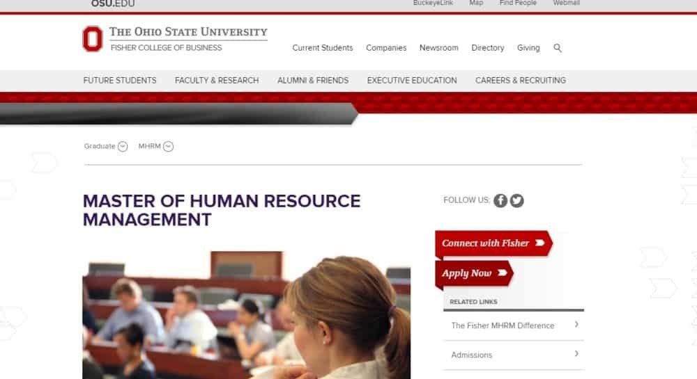 The Ohio state university’s Fisher Masters of Human Resource Management program enables students to learn core HR skills including HR theory, staffing, training, and compensation, from leading HR and organizational experts, and apply them in real-world settings.