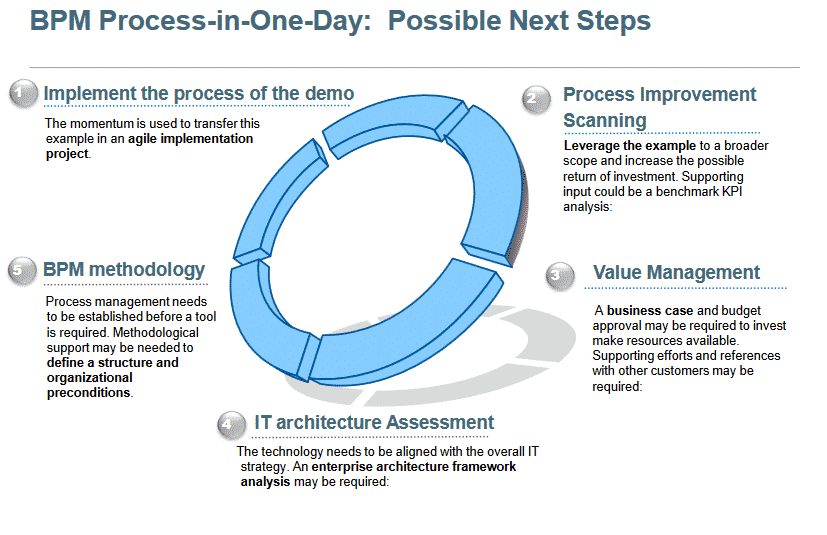 BPM provides the tools to visualize functions and processes, measure the appropriate measure to determine success, analyze by comparing the various simulations to determine an optimal improvement, improve the select and implement the improvement, control the implementation and by use of user-defined dashboards monitor the improvement in real time and feed the performance information and re-engineer the processes from scratch for better results.