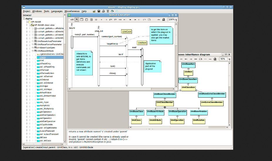BOUML is an UML 2 tool box including a modeller that allows users to specify and generate code in C++, Java, Idl, Php, Python and MySQL. It runs on Windows, Linux and MacOS X. BOUML is very fast and doesn't require much memory to manage several thousands of classes. In addition, the tool box is extensible, and the external tools (named plug-outs) can be written in C++ or Java, using BOUML for their definition. The code generators, reverses and roundtrips are some of the pre-defined plug-outs included in the BOUML distribution. BOUML releases from version 5.0 and licServer are not…