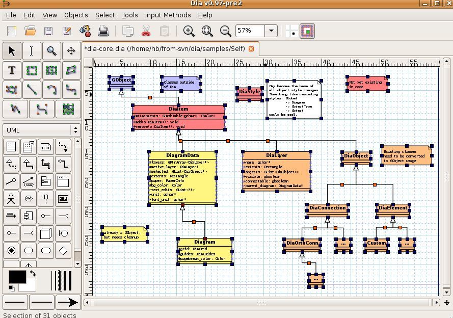 Dia by The GNOME Project is a GTK+ based diagram creation program for GNU/Linux, MacOS X, Unix, and Windows, and is released under the GPL license. It is roughly inspired by the commercial Windows program 'Visio,' though more geared towards informal diagrams for casual use. Dia can be used to draw many different kinds of diagrams and it currently has special objects to help draw entity relationship diagrams, UML diagrams, flowcharts, network diagrams, and many other diagrams. It is also possible to add support for new shapes by writing simple XML files, using a subset of SVG to draw the…
