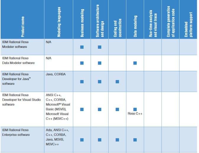 IBM Rational Rose Enterprise provides a set of model-driven capabilities for developing many software applications including Ada, ANSI C++, C++, CORBA, Java®, Java EE, Visual C++ and Visual Basic. The software allows you to accelerate development of these applications with code generated from visual models using the Unified Modeling Language (UML).IBM Rational Rose Modeler provides a set of model-driven capabilities for developing software applications. It allows architects and designers to produce Unified Modeling Language (UML) models of software architectures, business needs, reusable assets and management-level communication.Rational Rose Modeler offers a common modeling tool and language to simplify the work environment…