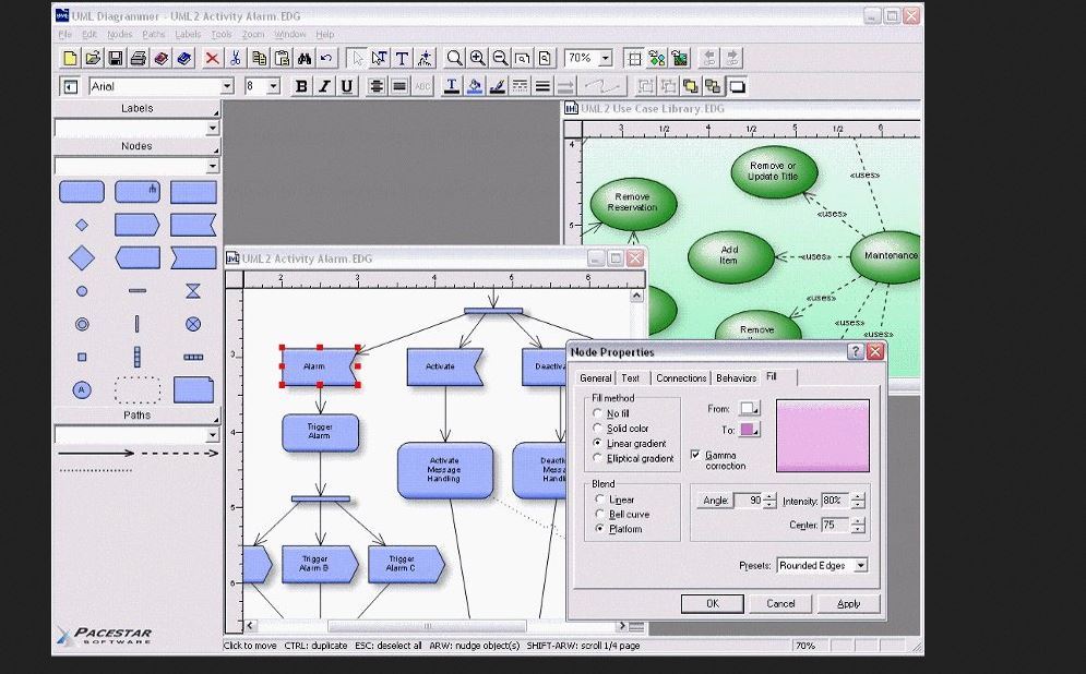 Pacestar UML Diagrammer helps users generate UML 2.0 diagrams quickly and easily. They can develop, document, and communicate their designs in a systematic yet flexible AND commonly understood notation. Also, they are able to create activity diagrams, class and object diagrams, communication diagrams, use case diagrams, sequence diagrams, state charts, package diagrams, and component diagrams, deployment diagrams, composite structure diagrams, interaction overview diagrams, and even traditional flowcharts. It is packed with aids to make UML diagramming easier.EDGE Diagrammer is Pacestar’s most versatile diagramming tool. Allows creating a wide variety of technical, presentation, and design diagrams efficiently and with the highest…