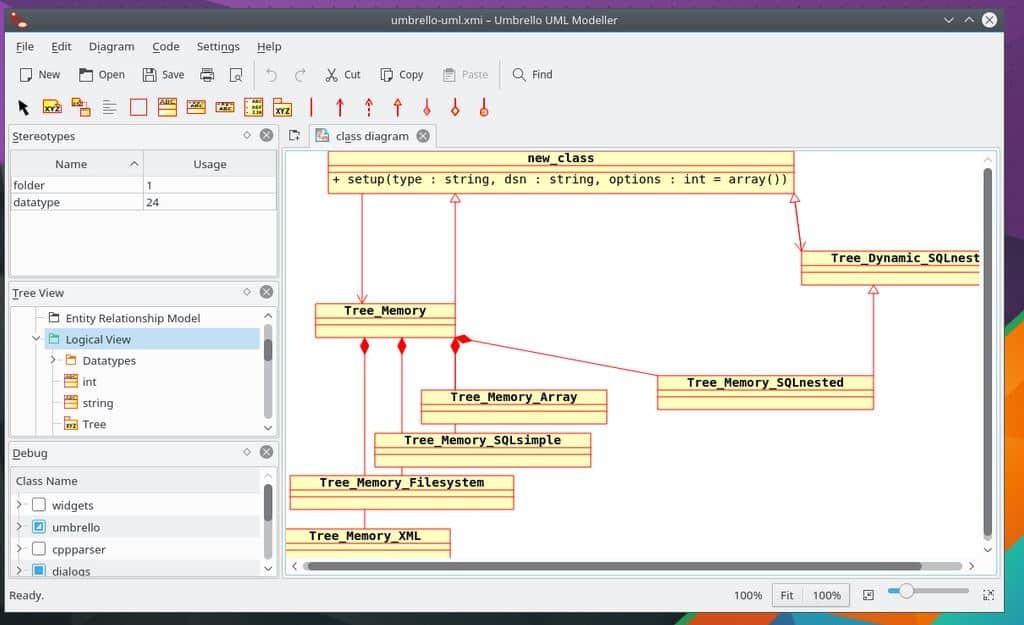 Umbrello UML Modeller is a Unified Modelling Language (UML) diagram program based on KDE Technology. UML allows users to create diagrams of software and other systems in a standard format to document or design the structure of their programs. Umbrello comes with KDE SC, included with every Linux distribution and available through users’ package manager and as an installer for Windows and Mac OS X. The program supports the following languages of code generators: ActionScript, Ada, C++, C#, D, IDL, Java, JavaScript, MySQL, Pascal, Perl, PHP, PHP5, PostgreSQL, Python, Ruby, SQL, Tcl, Vala and MLSchema. Besides this, Umbrello supports XMI…