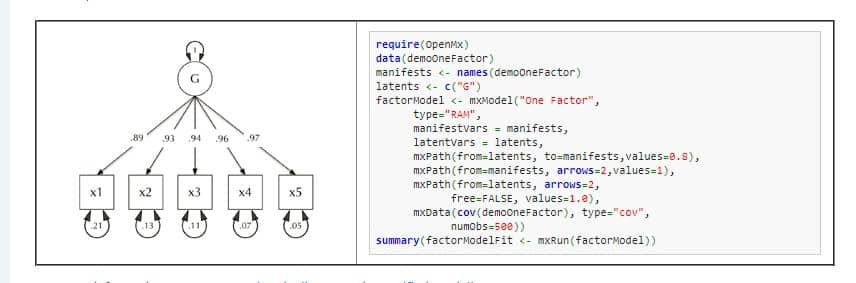 OpenMx is a free and open source software for use with R that allows estimation of a wide variety of advanced multivariate statistical models. OpenMx consists of features such as a library of functions and optimizers that allow users to quickly and flexibly define an SEM model and estimate parameters given observed data.