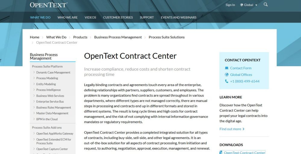 OpenText Contract Center provides a holistic, strategic and flexible approach to support your organization’s contracting processes. It does this with a completely integrated solution that implements contract management best practices, supported by an enterprise-class process automation platform and a best-in-class information