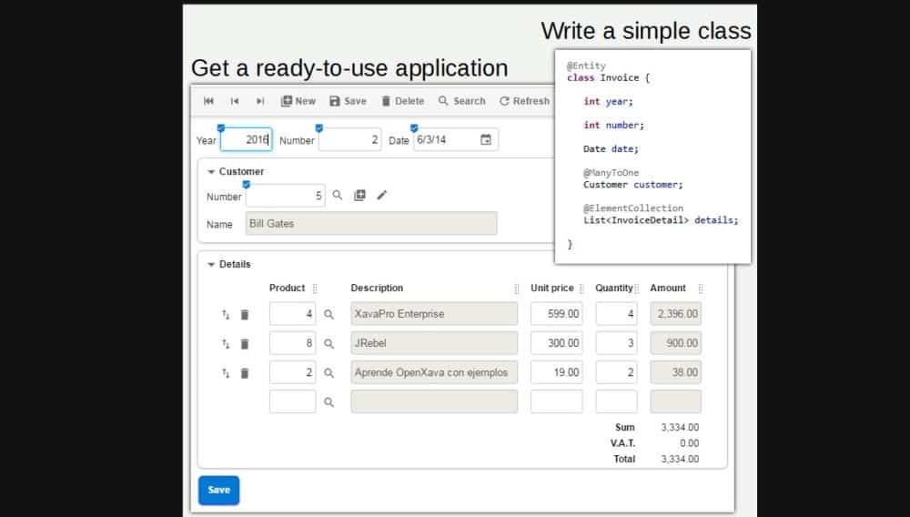 OpenXava is an Open Source Low-Code Development Platform to accelerate software development. Write the domain classes in plain Java & get a web application ready for production. OpenXava uses a test system based on JUnit and Http Unit. The OpenXava JUnit tests simulate the behavior of a real user with a browser. While developing with OpenXava, users will experience the speed of development without compromising the quality. The user interface and the database logic are automatically provided. Learning how to write simple Java classes is enough to write complete applications. The OpenXava bundle is prepared for a rapid startup. In addition to the classic web user interface for desktop, users can get a mobile user interface for the application from the same code. OpenXava is fully based on Java Standards: migrate your current Java code easily to OpenXava, and vice versa, while using any Java tool. Java developers are already OpenXava developers. OpenXava supports: JSR-317, JSR-303, JSR-330, JSR-220, JSR-153, JSR-168 and JSR-286. OpenXava integrates with third-party tools, including MinutProject ( Generates an OpenXava application from an already existing database), Mogwai ERDesigner (An entity relationship modeling / design tool(ERD) that generates OpenXava applications) and Moskitt ( A CASE tool, built on Eclipse, that generates OpenXava applications from UML models). OpenXava offers free support in community forums, but professional support is also available. It is multilingual – has standard labels and messages in 10+ languages. OpenXava is an exceptional tool that saves time and imposes a criterion of the unique development in the organization.