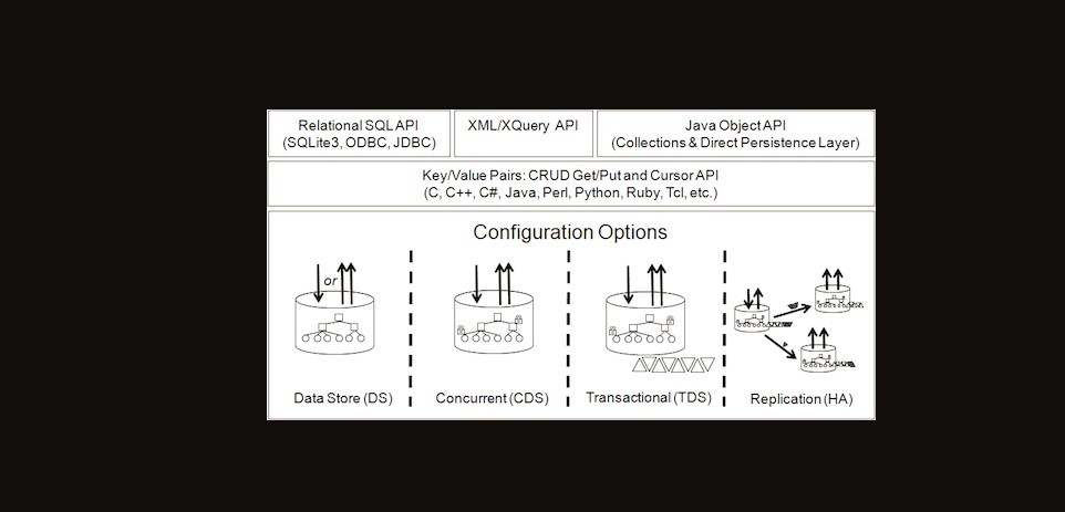 Oracle Berkeley DB is a family of embedded key-value database libraries providing scalable high-performance data management services to applications. Berkeley DB offers advanced features including transactional data storage, highly concurrent access, scalability on large SMP systems, replication for high availability, and fault tolerance in a self-contained, small footprint software library. The Berkeley DB uses simple function-call APIs for data access and management. Berkeley DB enables the development of custom data management solutions, without the overhead traditionally associated with such custom projects. Berkeley DB provides a collection of well-proven building-block technologies that can be configured to address any application need from the hand-held device to the data center, from a local storage solution to a world-wide distributed one, from kilobytes to petabytes. The primary goal of Berkeley DB is to deliver fast, scalable and flexible data management services to your application while remaining transparent to the end-user. Berkeley DB provides simple function-call interfaces to store and retrieve information quickly and easily. Data can be stored in the application’s native format, XML,SQL or as a Java Object. It supports most programming languages, including C, C++, Java, C#, Perl, Python, PHP, Tcl, Ruby and many others. Berkeley DB is designed for zero oversight in deployment, automating all administrative tasks with programmatic APIs. If you do not need SQL then use the key/value API for data storage. Berkeley DB provides a single-master, multi-replica highly available database configuration. Replication enables read scalability, fast fail-over, hot-standby and other distributed configurations, giving enterprise grade features in a small, embedded package.