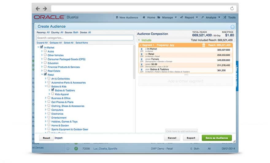 B2B marketers can now access 300 million anonymous business profiles from Oracle BlueKai Audience Data Marketplace or through Oracle Data Management Platform, part of Oracle Marketing Cloud, to help identify their ideal audience and enhance their media efforts with targeting precision and scale. The data set includes more than 200 targeting attributes, including granular targeting against company age, size, industry, sales volume, employee type, role, and more.