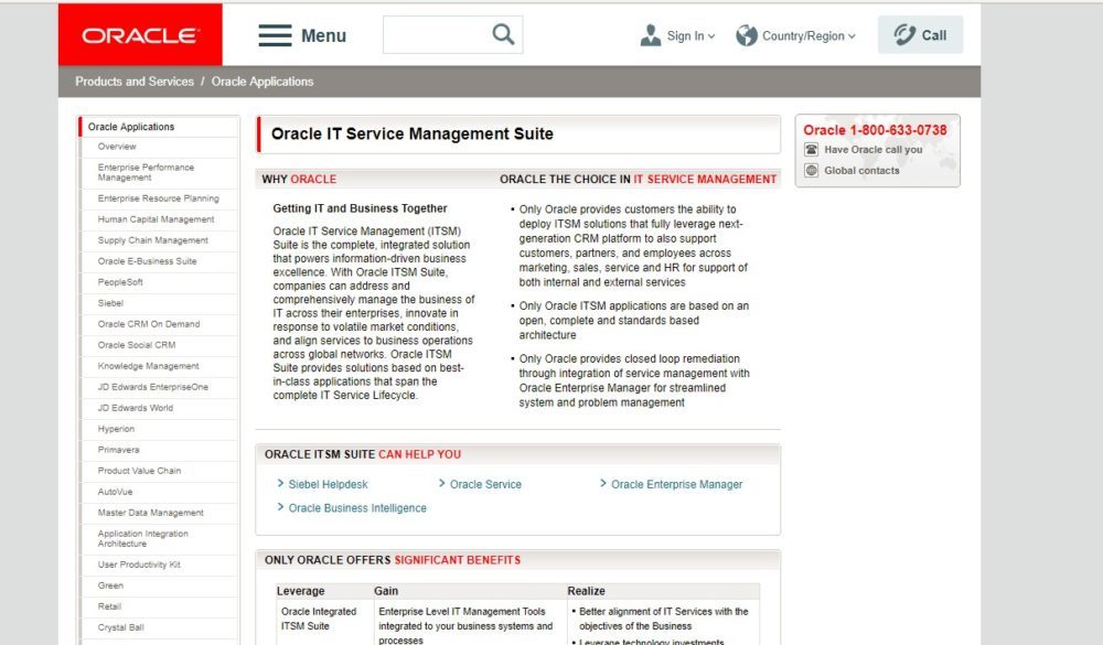 Oracle IT Service Management also offers comprehensive and integrated solutions that power information-driven business excellence at a service desk. The enterprise IT management suite software also provides customers with the ability to deploy ITSM solutions that fully leverage the next generation CRM platform. Through this CRM platform, Oracle IT Service Management Suite give support to customers, partners, and employees across marketing, sales, service, and HR for support of both internal and external services.