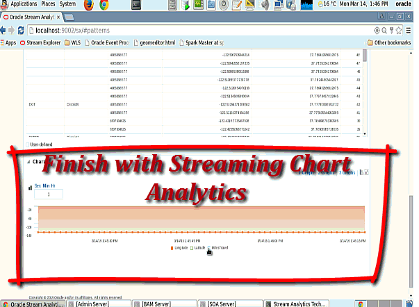 Oracle Stream Analytics features Visual GEOProcessing with GEOFence relationship structural analysis. It provides a compelling mixture easy to use visual façade to create and modify real time streamed events that leads to managing data and executing proper solutions.