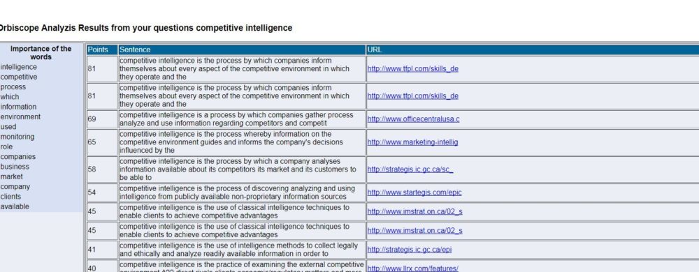 Orbiscope Metasearch provides its users the ability to ask questions in natural language and get real answers, making possible to have clears answers and fast information on subjects not found in dictionaries. It also avoids pages and sites that users don't want in their search results anymore. This means that users can build their own search filter.