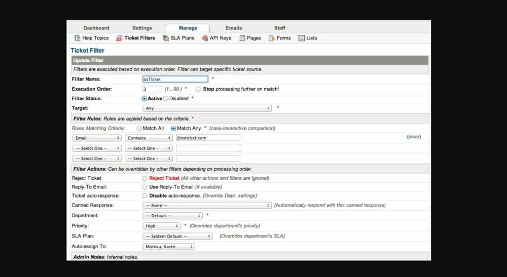 OsTicket comes with many features which again are completely free. OsTicket provides custom fields where data collected from users is customized when submitting and straighten up the issue. Custom lists and forms can be added to tickets to enable clients in making choice and can also be customized to suit the business needs. osTicket supports HTML email and allows for rich text mark-up in staff replies and notes.