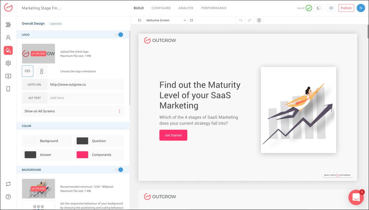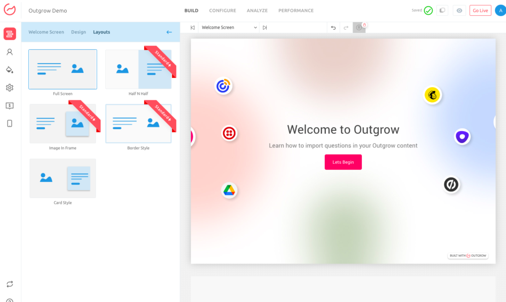 Outgrow is positioned as a no-code platform. Advanced customization exists, but most builds can be completed without code.