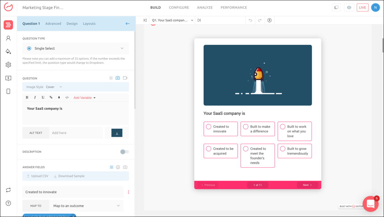 Launch, add tracking/pixels as appropriate for your plan, and start measuring drop-off at question-level. That’s where Outgrow becomes worth paying for.