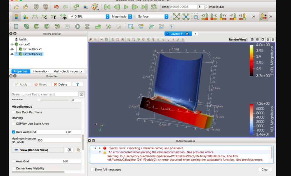ParaView is a data analysis and visualization multi-platform application which uses Visualization Toolkit (VTK) and Qt software for an intuitive interface for data analysis.