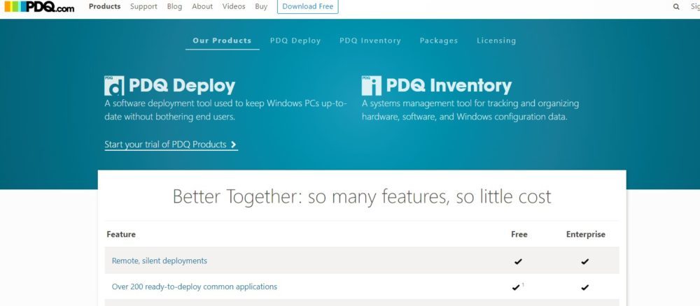 Using PDQ Deploy, administrators may create custom packages and deploy them to any computer on their network. For convenience and ease-of-use, admins can also use more than 150 ready-to-deploy packages of popular free software from the PDQ Deploy Package Library. Access to the Package Library depends on license level. PDQ Deploy Enterprise licenses are based on the number of system administrators who use the software, not the number of computers managed.