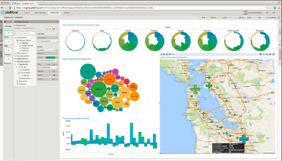 Vivint, a leading US based provider of smart home technology including solar, security and control solutions. The company deployed Platfora to provide new insights and conduct visual analytics on machine and sensor data gathered in its ecosystem of enterprise data systems and millions of home automation devices. During one product quality monitoring exercise, analysts discovered anomalies in a small group of customer home systems. They could not pinpoint the problem using traditional analytics tools, so analysts worked iteratively in Platfora with various sensor and machine data sets until they found a consistent pattern, which turned out to be a minor manufacturer’s defect. This discovery enabled Vivint to roll service trucks to customer homes and solve the problem before most of them became aware of the situation.