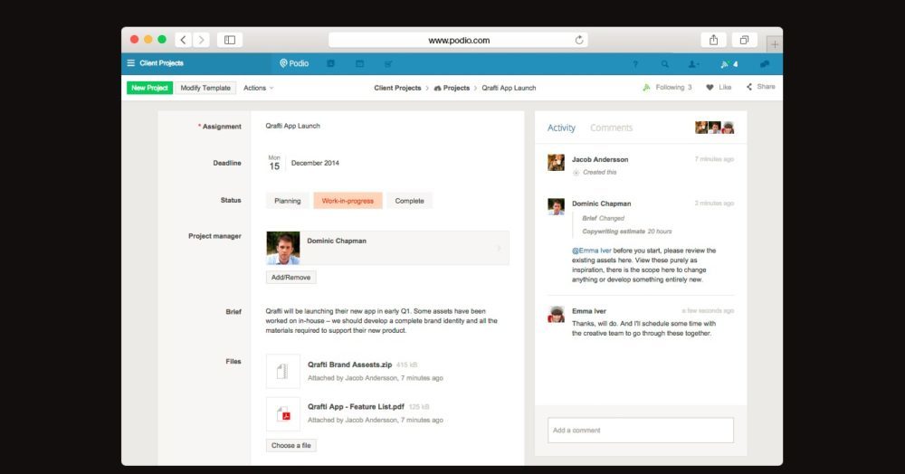 Podio is a project management and social collaboration tool. It allows businesses to create custom applications to best meet unique business requirements and preferred workflow—without the need for technical skills or development resources.