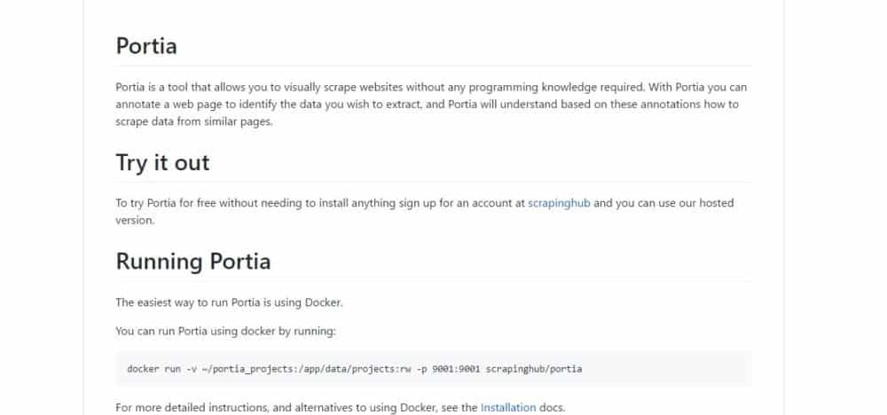 Web scraping involves coding and programming crawlers. If the user is a non-coder person, Portia can help extract web contents easily. This Scrapinghub’s tool lets the user use point&click UI interface to annotate (select) web content for its further scrape and store of it. I’ll go deeper inside Portia later in this post.