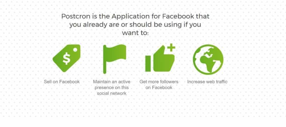 Postcron is an online service that enables users to easily schedule posts on Facebook, Twitter, Linkedin, Google+, Pinterest and Instagram for specific dates and times.