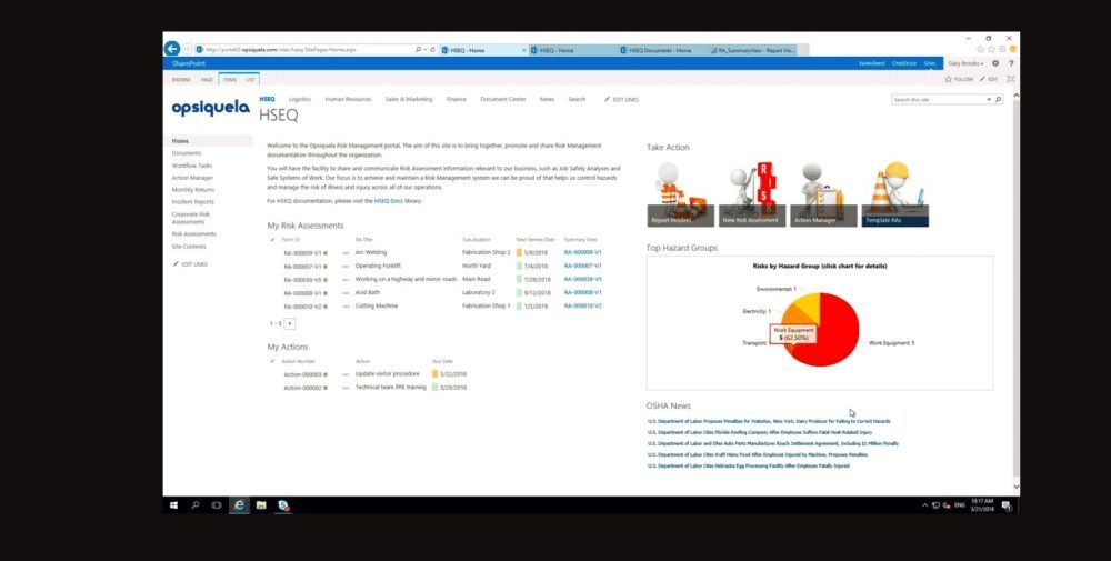 • Make use of SharePoint for every step of safety management, facilitating single sign on for users and removing system silos.