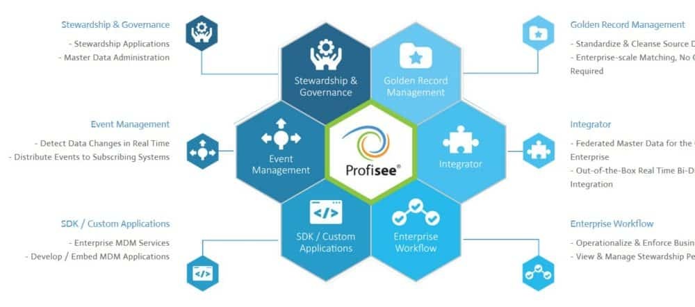 Profisee Platform is a full featured enterprise master data management solution designed to provide the lowest total cost of ownership of any competitive solution, without sacrificing on functionality across all major components of an MDM platform.