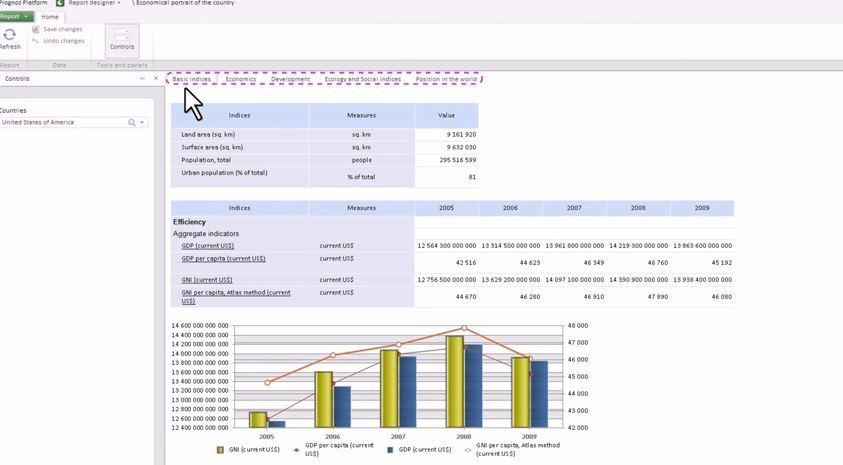 User-friendly data import, flexible search engine, and advanced data analysis capabilities are the keystone of success of a modern BI platform. The Prognoz platform data import mechanisms are aimed for even non-experienced users: the system automatically defines the loaded data parameters. Platform 8.0 enables users to load crosstabs and multilevel file headers, and use additional settings relating to attribute dimensions and data types. This functionality together with automatic model generation capability significantly facilitates and optimizes data analysis. The platform opens up opportunities to create interactive presentations and discuss generated reports. Users can easily share their "live" report sending them by e-mail, including through mobile devices. Text search mechanism by data source content, source name and dimension has been upgraded.