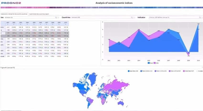 Prognoz Platform 8.0 provides cross-platform visualizers compatible with Windows, iOS, and Linux. The solution comes with extended range of interactive visualizers and geospatial intelligence capabilities from map micro-charts to indicators of various territory levels concurrently displayed in step, doughnut, and other charts. The main focus was made on the advanced visualization features of mobile version. In addition, users can easily register the application data visualization components.