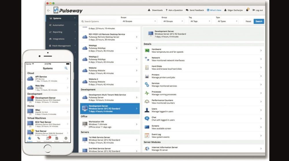 The monitoring feature gives real-time status, system resources, logged in users, network performance, Windows update, and SNMP enabled devices. Pulseway offers an excellent platform to react issues right away and fix problems on the go by sending commands from any mobile device. Pulseway also allows running commands in terminal, managing running processes and restart services, applying critical updates, and restarting systems. Pulseway allows automating everything from backup jobs to security checks on schedule or on demand at any time.