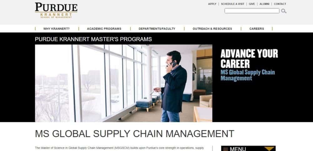 The Purdue University, Master of Science in Global Supply Chain Management program builds upon courses which develop contextual knowledge and problem solving skills to provide a unique global work experience as a member of an international team.