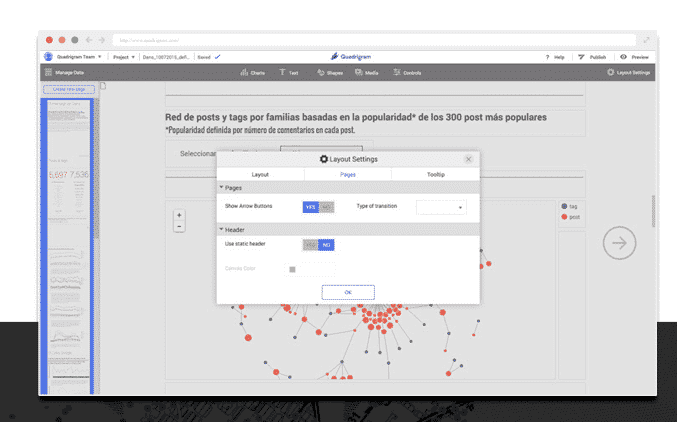 Quadigram is a visual drag & drop data editor that will transform the stories you bring to the web.Quadigram combine texts, images and interactive visualizations to bring your data to life.Create articles, presentations or embedded visualizations to communicate your insights.