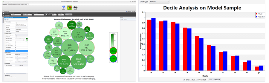 “I’ve used Rapid Insight for over 5 years. While the power and ease of use of RI products have always been critical for me, Analytics 3.0 is a leap forward in both predictive analytics power and new functionality including expanded data visualizations that help me explore my data and convey actionable information to my institution—all without sacrificing the ease of use.” said Loralyn Taylor, Director of Analytics for University Student Success Initiatives, Ohio University.