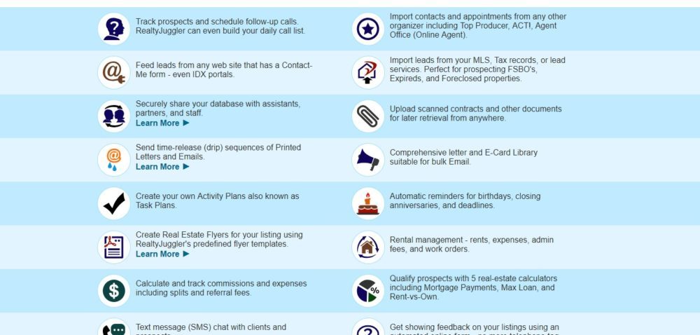 RealtyJuggler functions as an organizer for real estate agents, helping them to manage contacts, appointments, and leads in a master database that can be accessed by multiple users. Since 2004, tens of thousands of real estate professionals have relied on RealtyJuggler. While others create products that emphasize complexity and power, RealtyJuggler's focus is on simplicity.