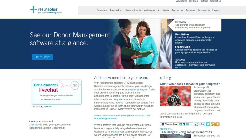 The ResultsPlus Online feature offers donors with the full power of donor management software that requires none of the IT maintenance.