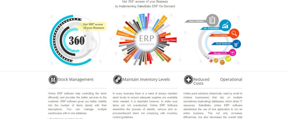 SalesBabu ERP On-Demand lets users get a 360° access of their Business with Stock Management, Purchase Management and Management of Customer Relations.