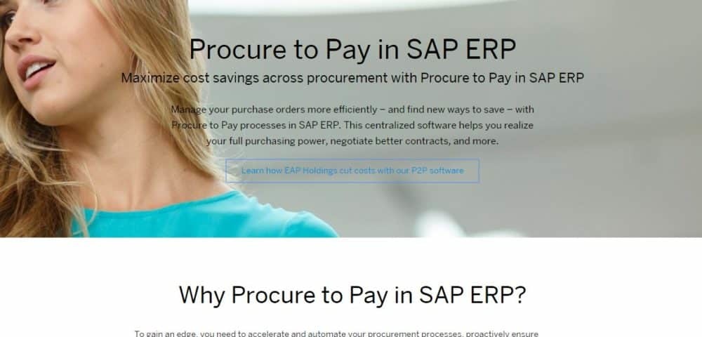 SAP ERP Procure-to-Pay is software that helps you to maximize cost savings across procurement, manage your purchase orders more efficiently and find new ways to realize your full purchasing.