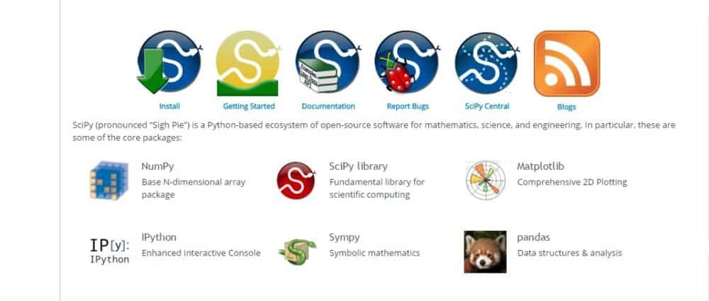 The Matplotib is a plotting package that provides users with rudimentary 3D plotting and publication-quality 2D plotting. The pandas package provides users with data structures that are easy to use and also high performance structures. SciPy also features SymPy that is used by users for computer algebra and symbolic mathematics.