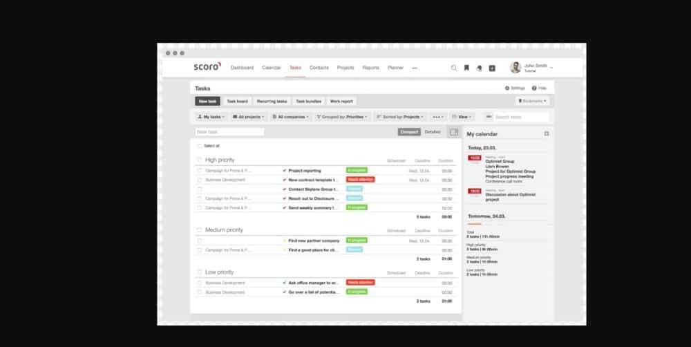 Scoro is a task management software designed to manage to-do lists, assign tasks, and get real-time updates on projects. The software features calendaring, task and project management, quoting and billing, enterprise-level reporting and a real-time dashboard.