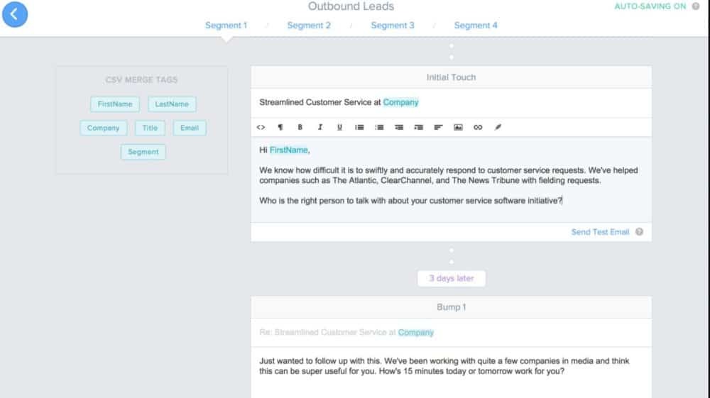 Sendbloom – a powerful, beautiful, and easy-to-use prospecting automation platform that helps inside sales representatives and SDRs prospect, segment, and nurture target accounts. Easily nurture prospects with campaign bump functionality, in-thread follow-ups, and automatic reply-based list management. With Sendbloom, you can personalize your outbound emails in ways you’ve never thought possible.