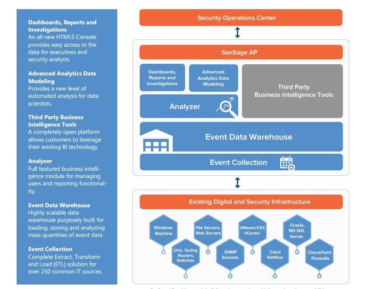 Ignite’s SenSage AP and SenSage Insider Threat allow organizations to build or buy industrial strength applications that allow enterprises to use the information their systems are already generating to meet business-critical goals such as fraud detection, insider threat behavior analysis, and regulatory compliance.Ignite’s SenSage AP is a powerful Event Data Warehouse (EDW) that enables advanced data analysis, detailed forensics and ad hoc investigations on a wide variety of data formats at very large scale. The only EDW designed specifically for event data, it collects and stores more data, from more sources, over longer periods of time – years or even decades – so that you can conduct faster, more sophisticated analytics.It leverages open standards for querying data, with ODBC/JDBC drivers and ANSI standard SQL language. This enables sophisticated correlations with full precision, even on very large data sets and allows you to optionally use your favorite BI tool (Crystal Reports, Business Objects, etc.).Column-based storage with built-in compression makes efficient use of disk space and up to a 40x better compression ratio than an RDBMS.It collects billions of events per day with a time stamp from any source, including 250+ source-specific off-the-shelf adapters for most common IT infrastructure systems.