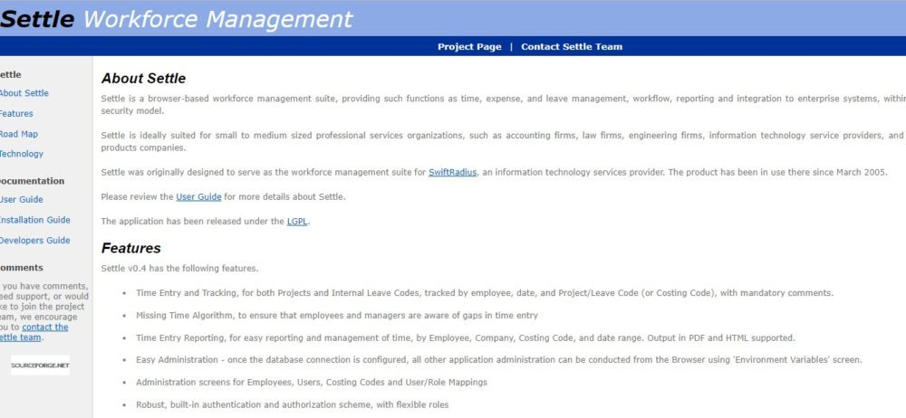 Settle is a browser-based workforce management suite which offers easy administration, administration screens, time entry and tracking and roadmap.