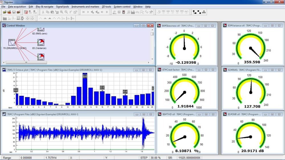 With sigview, there is freedom of combining varying signal analysis methods in any way. To test whether it meets particular needs, a functional version of it can be downloaded to be used for 21 days. Sigviews offers a real-time feature, which provides an excellent way to work with live signals and ultimately be able to observe results immediately
